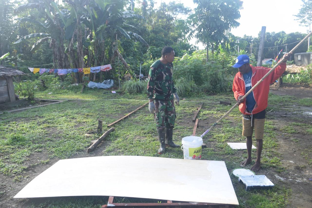 Sorong, Papua Barat. – Prajurit TNI yang tergabung dalam Satgas TMMD wilayah Kodim 1802/Sorong, dibantu masyarakat Melaksanakan Gotong royong pembangunan perumahan sebanyak 8 unit dan Pengecatan Gereja Syaloom. Hal ini menunjukan bahwa adanya TMMD masyarakat sangat merespons positif, Rabu (17/03/2021).
