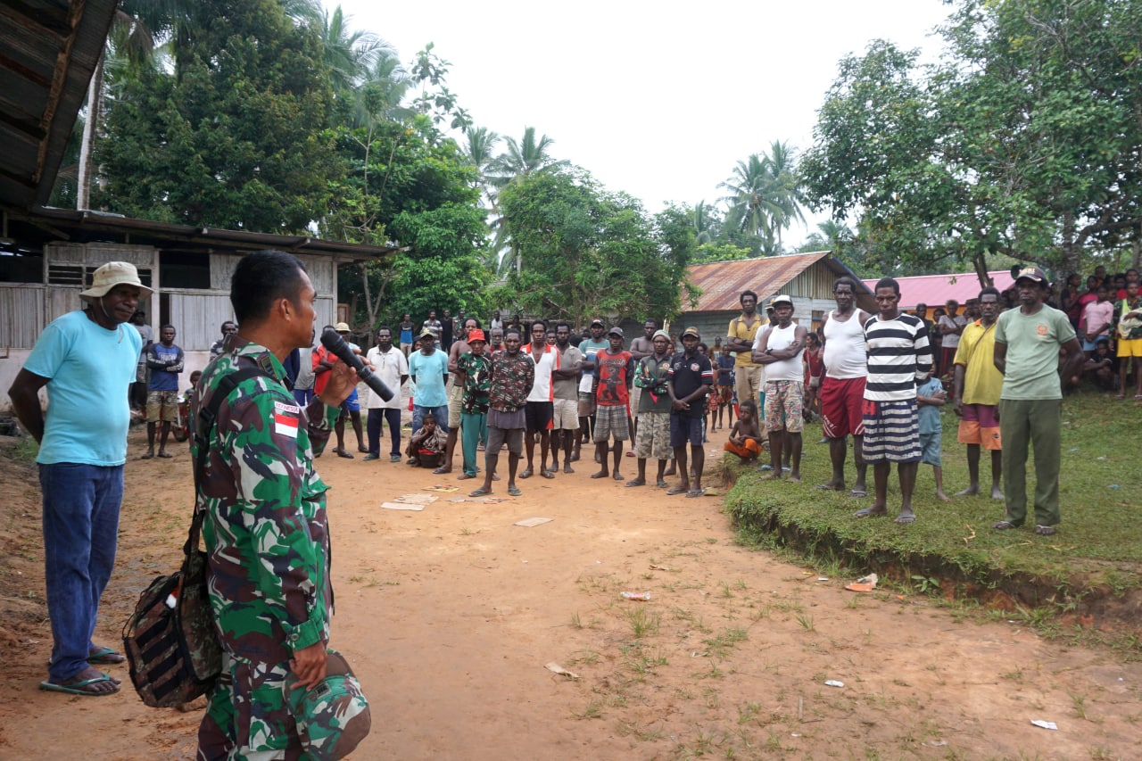MERAUKE – Usai melaksanakan pembangunan 20 unit rumah masyarakat di Kampung Okor Distrik Haju Kabupaten Mappi melalui program TMMD ke-112, personel Satgas TMMD Ke-112 Kodim 1707/Merauke yang dipimpin langsung oleh Danki Satgas TMMD Ke-112 Kapten Inf Herman Purba menggelar Komunikasi Sosial (Komsos) sekaligus mohon diri untuk kembali ke Kabupaten Merauke, Kamis (14/10/2021).