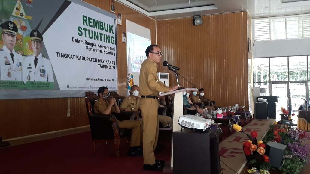 “Instansi yang berkontribusi langsung dalam kegiatan penurunan stunting terintegrasi, sangat dinantikan aksinya dari kita semua agar terwujud masyarakat Way Kanan yang unggul dan sejahtera,” ujar Adipati Bupati Way Kanan saat menyampaikan sambutan tertulisnya pada acara Pertemuan Rembug Stunting Kegiatan Konvergensi Penurunan Stunting Tingkat Kabupaten Way Kanan Tahun 2021.