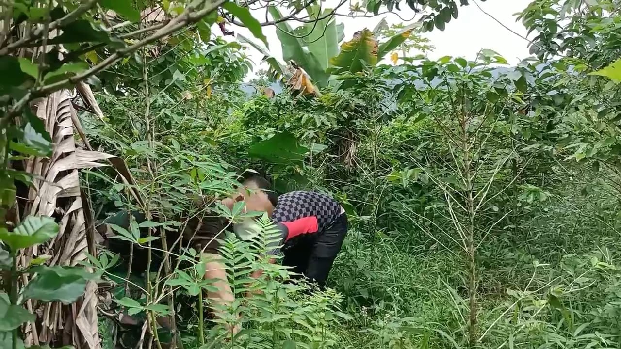 Satgas TMMD ke 111 kodim 0212/TS anggota Satgas membantu warga Bonar Siregar cari rumput pakan Kambing di Desa Siuhom Kecamatan Angkola Barat Kabupaten Tapanuli Selatan