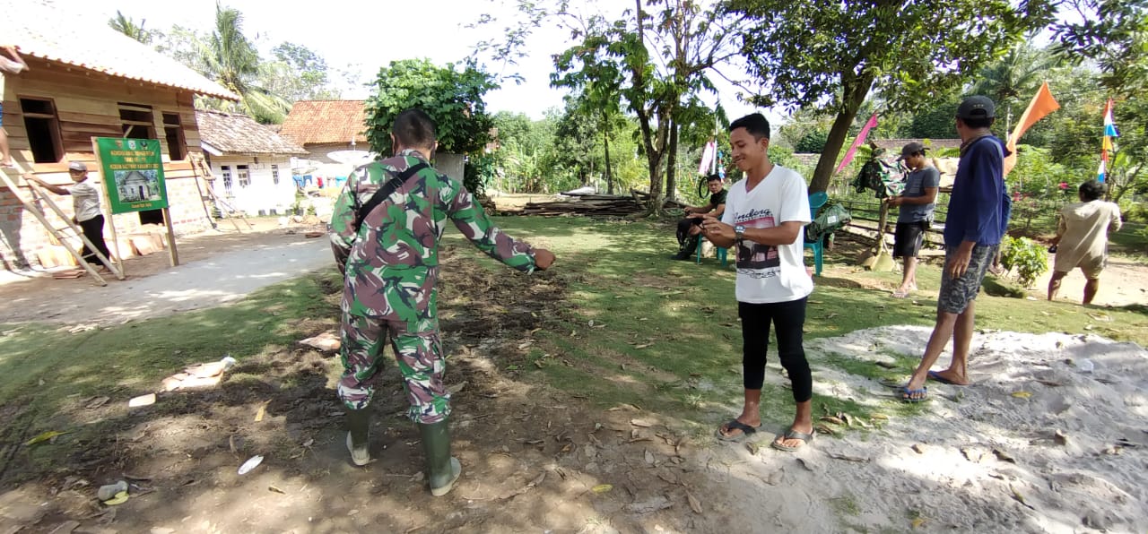 Hal tersebut dilakukan oleh anggota Satgas Pra TMMD Ke-111, Serda Suprapto yang membagikan masker kepada bapak Sugeng (46) dan bapak Agus (39), warga kampung Negeri Batin, Kec. Umpu Semenguk, Kab Way Kanan yang lupa tidak membawa masker.