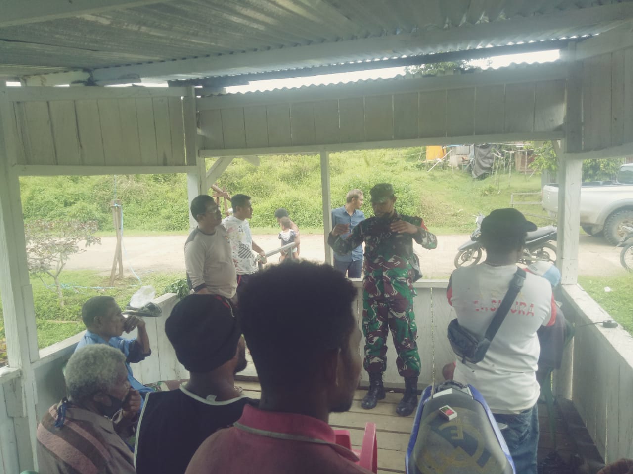 Sorong Papua Barat. Rabu(13/10/2021) – Ajakan Babinsa Koramil 1802-03/Salawati Koptu Wahidin kepada masyarakat untuk selalu menanggapi isu – isu yang yang berasal dari media sosial secara bijaksana dan harus menanyakan informasi kepada aparat yang berada di Kampung Katinim Kelurahan Katinim Kabupaten Sorong.