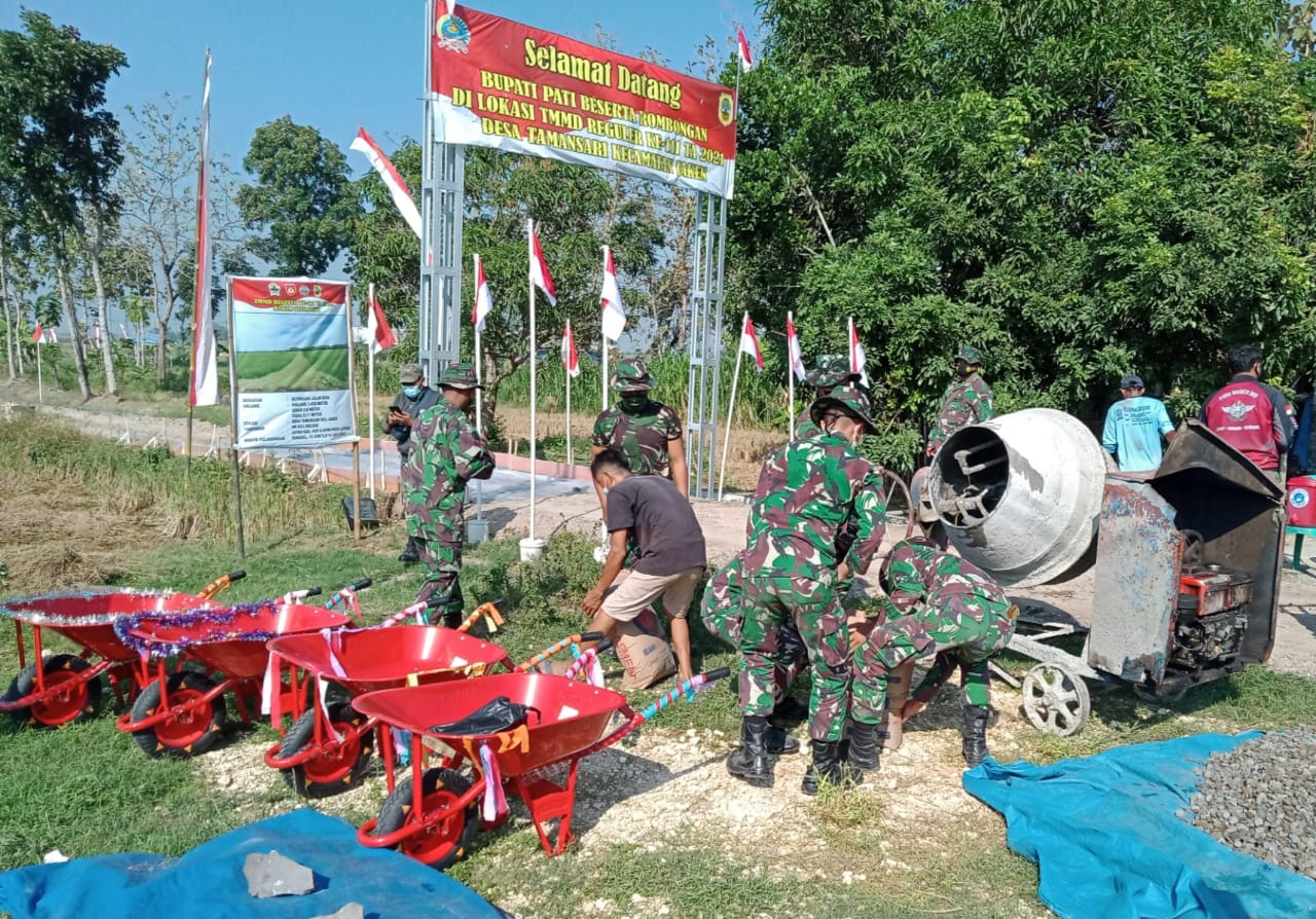 Hal itu dilakukan untuk menunjang kelancaran seluruh kegiatan TMMD yang secara resmi dibuka hari ini, oleh Bupati Pati Haryanto, Selasa (15/6/2021) di Balai desa Tamansari. Mulai dari mesin molen, angkong, pengki (cikrak), cangkul dan sejumlah alat langsir material lainnya.