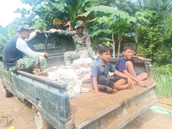 Kubu Raya – Jika awalnya takut, dipertengahan pelaksanaan TMMD ke-111 Kodim 1207/Pontianak, anak-anak di Desa Kuala Mandor B, Kecamatan Kuala Mandor B, semakin akrab dengan para TNI anggota satgas TMMD. Bahkan belakangan ini, menjadi hobi baru anak-anak di desa sasaran TMMD ke-111, yakni selalu menempatkan diri untuk bisa naik kendaraan dinas milik TNI, Selasa (29/06/2021).