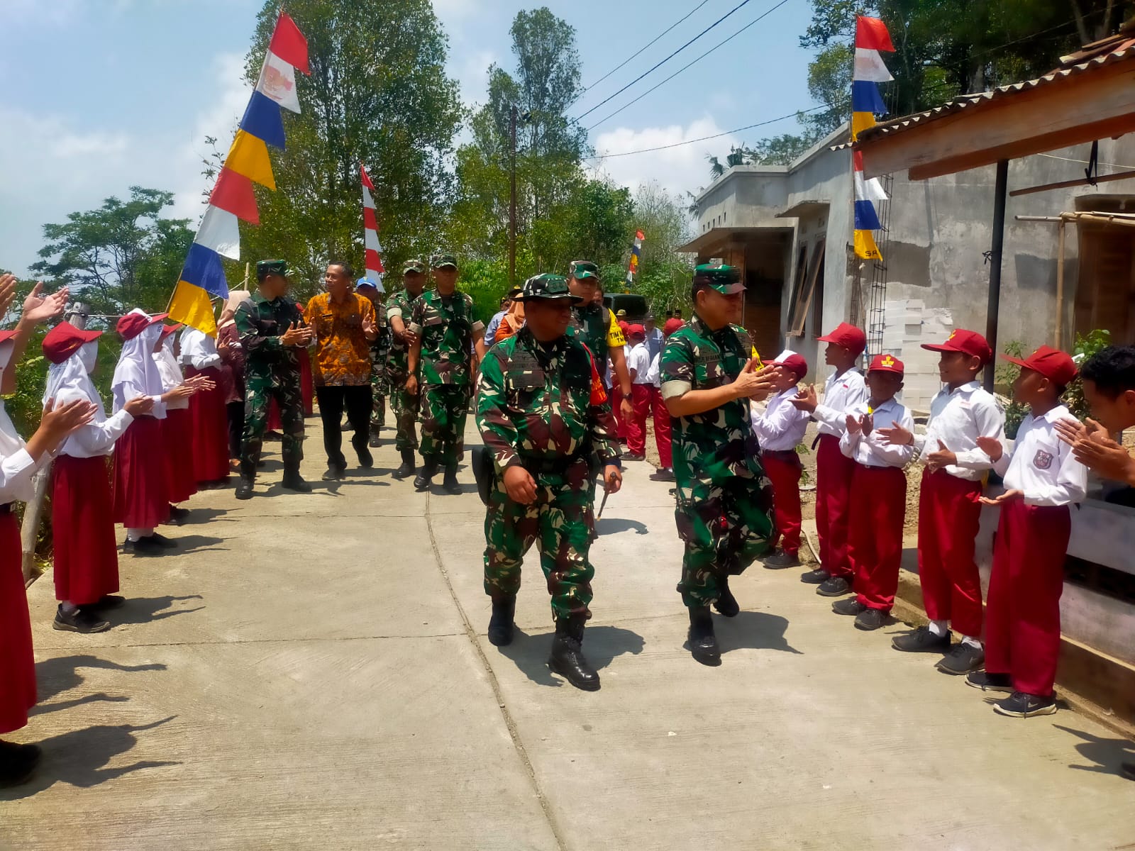 Purworejo-Keceriaan nampak terlihat di wajah anak anak SD N 1 Benowo yang dari pagi sudah mempersiapkan diri masing masing menyambut kedatangan tim was Asev dari Mabes AD di lokasi TMMD 118 Kodim 0708/Purworejo