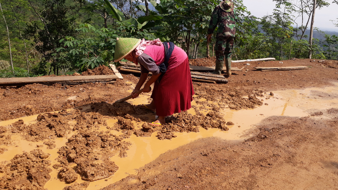 ”Bagi kami, di medan tugas, seperti di medan pelaksanaan TMMD, segala situasi sudah siap kami hadapi. Termasuk makan siang dengan sistem bagi bagi lauk di lokasi TMMD, beratap langit,” ungkap Sri (45) salah satu warga Kebutuhjurang.