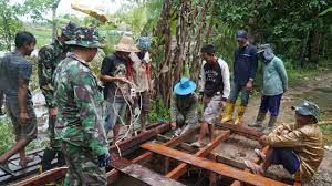 Anggota TNI dari Kodim 1011/KLK yang diturunkan mulai berjibaku mengejar target dalam bekerja. Meskipun yang dilakukan demikian, namun tak akan mengurangi nilai kekuatan serta kualitas dari bangunan yang mereka kerjakan karena mereka melakukannya sesuai dengan spesifikasi yang telah ditentukan.
