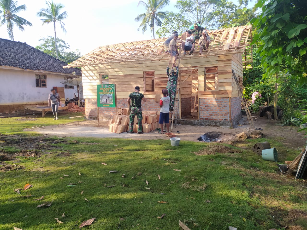 Sebelumnya, anggota TNI yang tergabung dalam Pra TMMD ke 111 Kodim 0427/Way Kanan, dibantu warga menaikkan kayu rangka atap milik bapak Asrip tersebut. Asrip selaku pemilik rumah juga ikut membantu dalam pengerjaan pembangunan tersebut, walaupun dia hanya mengusung bahan-bahan material ringan, Tak hanya tinggal diam, bapak Asrip juga ikut membantu menaikkan kuda-kuda rumahnya yang memang sudah menjadi target dari program Pra TMMD.