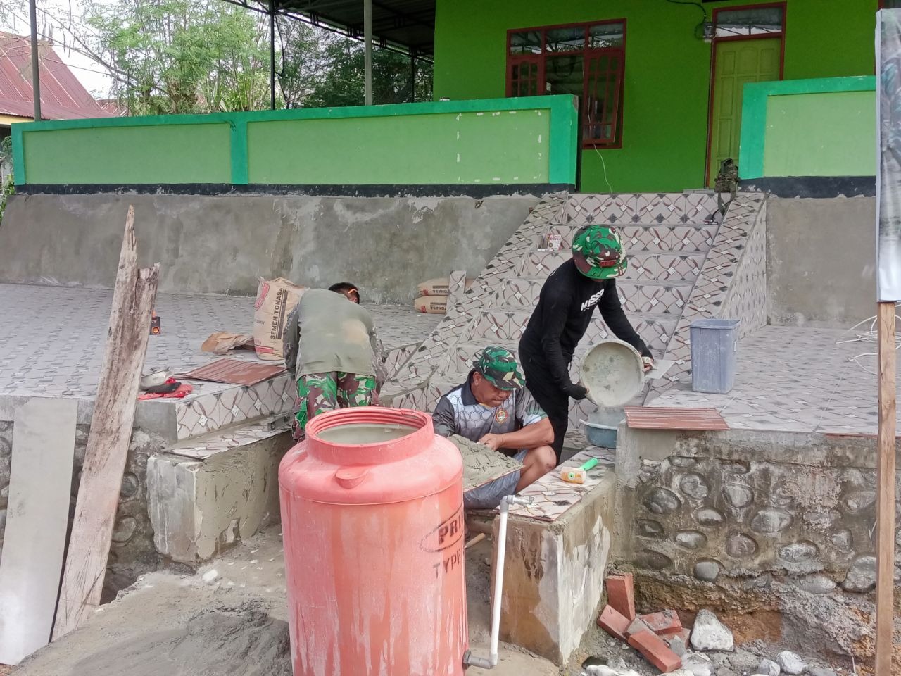 Pekerjaan pemasangan keramik dilakukan dengan penuh dedikasi oleh anggota Satgas TMMD bersama warga sekitar. Kegiatan ini tidak hanya bertujuan memperindah tampilan masjid, tetapi juga untuk memberikan kenyamanan bagi jamaah yang beribadah. Dengan semangat gotong royong, proses pemasangan keramik dapat berjalan lancar dan sesuai dengan waktu yang ditargetkan.