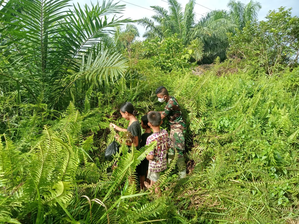 Seperti yang dilakukan anggota Satgas TMMD 111 Kodim 1202/Skw ini, Serda Dika mengatakan, bahwa dirinya bersama dengan anak Dusun mencari sayur di hutan, yang akan dimasak untuk makan siang bersama.