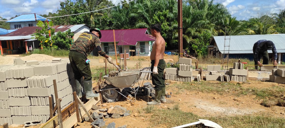Bengkayang – kejar target pengerjaan tanpa lama-lama anggota satgas TMMD langsung kerjakan pengecoran pembangunan pagar gereja setelah selesai pasang rangka besi di desa setangau jaya kec. seluas kab. bengkayang.