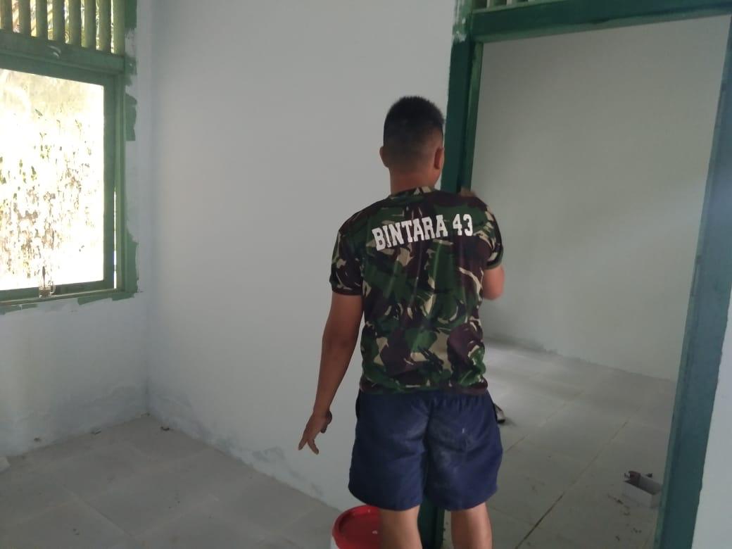 Bengkayang – TNI Manunggal Membangun Desa (TMMD) ke-111 Kodim 1202/Singkawang pengerjaan perehaban Pustu sekarang ini telah memasuki tahapan proses pengecatan pintu Puskesmas pembantu(Pustu) berempat di Desa Sentangau Jaya, Kecamatan Seluas, Kabupaten Bengkayang.