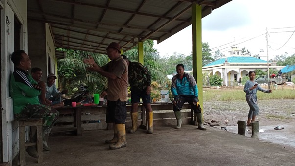 Kubu Raya – Program TMMD ke 111 Kodim 1207/Pontianak personil TNI dan warga setempat disela-sela waktu luang dalam pengerjaan jalan rabat beton, tak luput mereka saling bercengkrama dan tukar pengalaman ini sangat terlihat kedekatannya antara TNI bersama warga di Dusun Maju Jaya, Desa Kuala Mandor B, Kecamatan Kuala Kecamatan B, Kabupaten Kubu Raya, Jumat (02/07/2021).