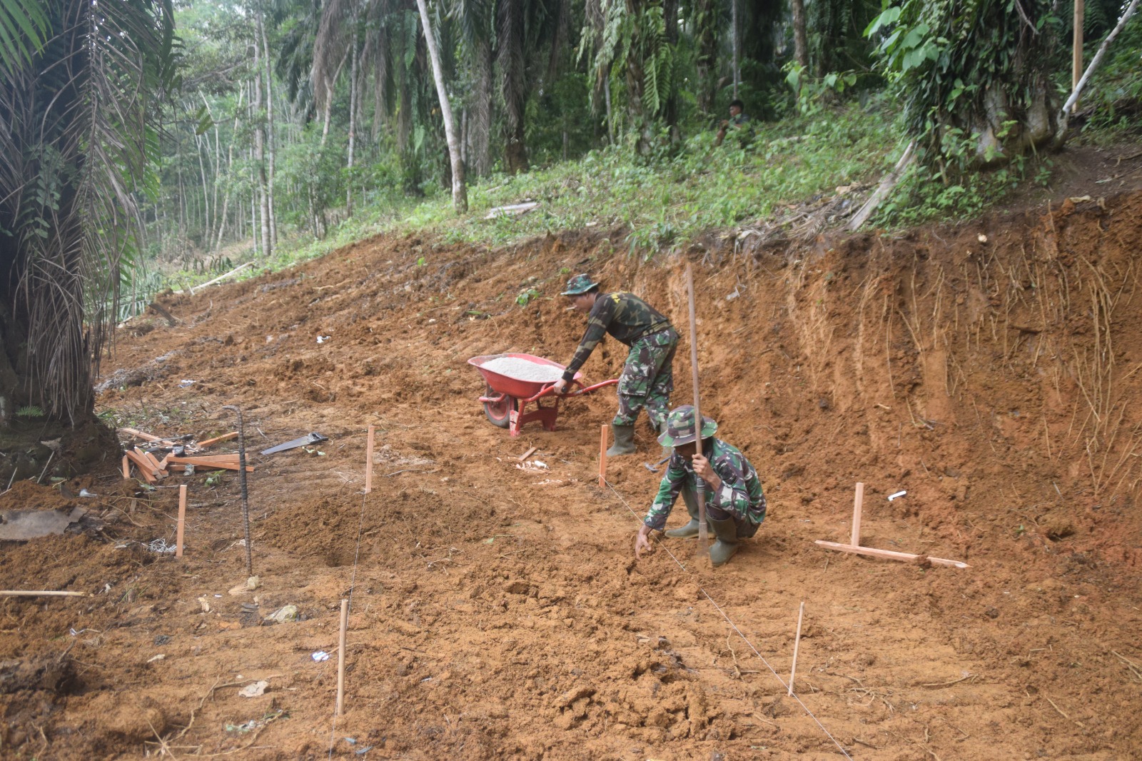 Kapten Inf Sahita Perwira Satgas TMMD ke 122 Kodim 0420 Sarko selaku koordinator program ketahanan pangan mengatakan bila hari ini pihaknya menyiapkan lokasi pembuatan kandang kambing.
