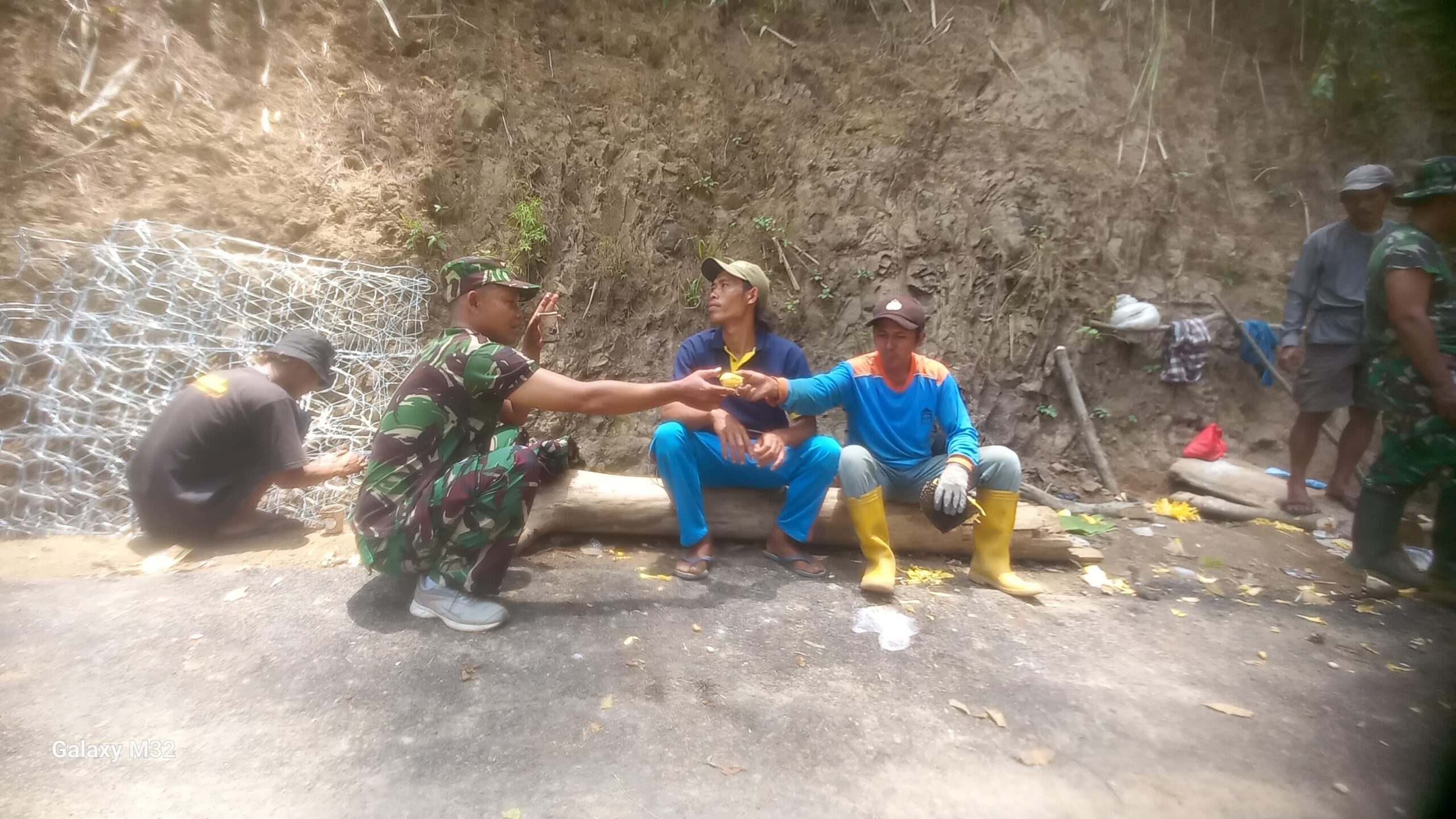 Salah satu warga desa tetangga yaitu desa Majalangu Bapak Cipto (61) RT 01/02 ikut berpartisipasi dengan mengirimkan buah nangka yang sudah matang hasil dari kebunnya untuk Satgas TMMD bersama warga.