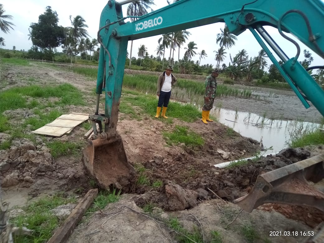 PALEMBANG,KODIM0418 – Satgas TMMD Kodim 0418 Palembang melakukan pengawasan pemasangan pipa paralon saluran air ke sawah.