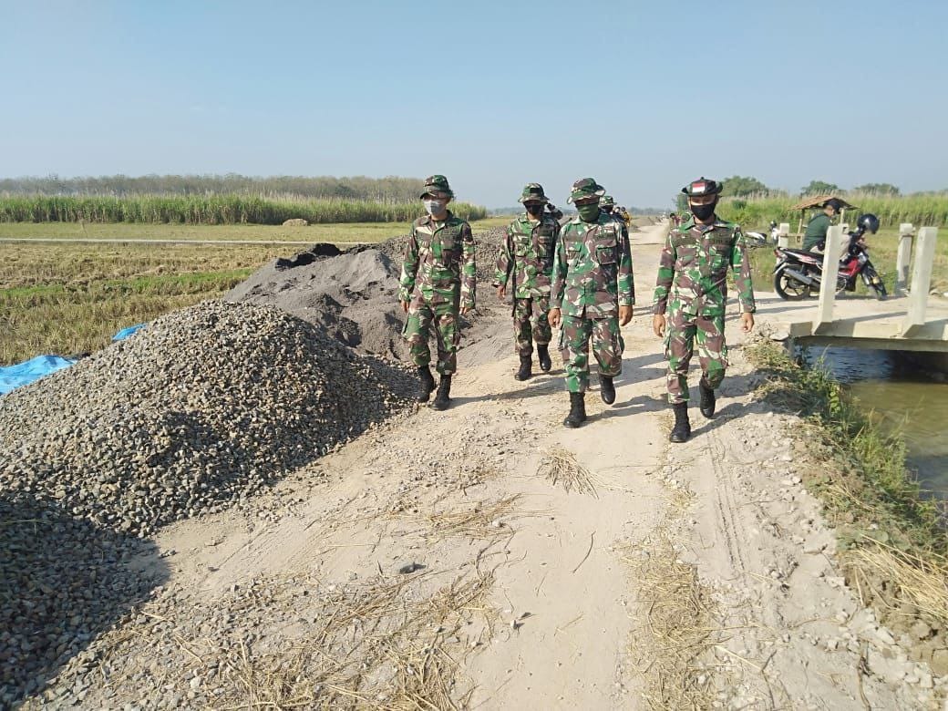 Pati – Puluhan anggota TNI yang tergabung dalam Satgas TMMD 111 Kodim 0718/Pati, bersama sama kompak melaksanakan pengecekan jalan yang akan di Cor sepanjang 1.450 meter yang menghubungkan antara dua desa, yaitu Desa Tamansari dan Desa Sumberarum, Kecamatan Jaken, Kabupaten Pati, Rabu ( 16/06/2021).