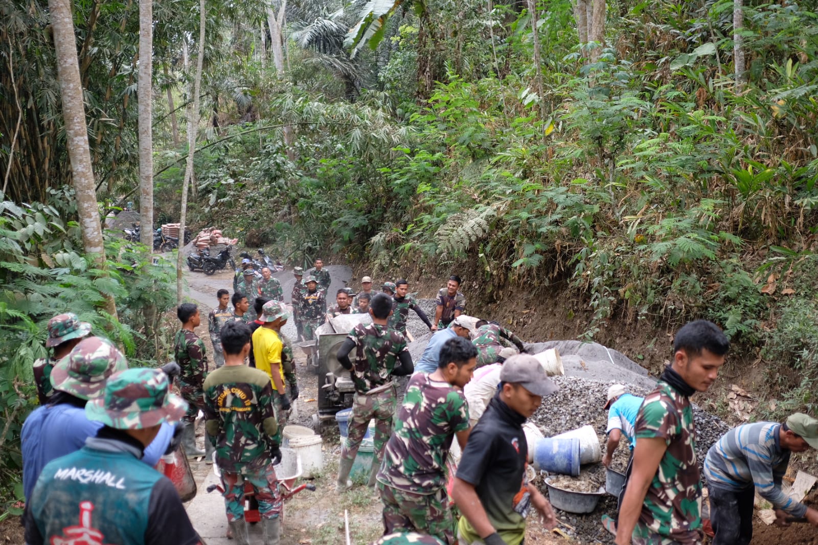 Pada pelaksanaan pengecoran jalan, anggota TNI bersama warga berbagi tugas. Ada yang bertugas melangsir material cor ke dekat mesin molen, ada yang membawa adonan cor ke titik pengecoran dan ada juga yang bertugas sebagai operator mesin molen. Hal ini agar seluruh progres dapat selesai tepat waktu.