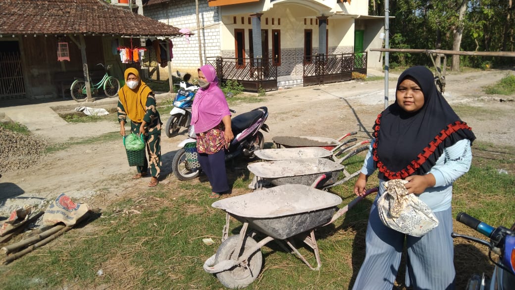 Kedatangan kaum ibu ini diprakarsai oleh ibu Suminah (39), ia membawa bungkusan berisi sejumlah makanan dan minuman ringan, lalu ada roti dan camilan lainnya. Tak lupa pula teh manis hangat disuguhkan kepada para personil satgas dan masyarakat yang sedang membangun jalan penghubung antar desa yakni Desa Tamansari, menuju Desa Sumberarum Kecamatan Jaken.