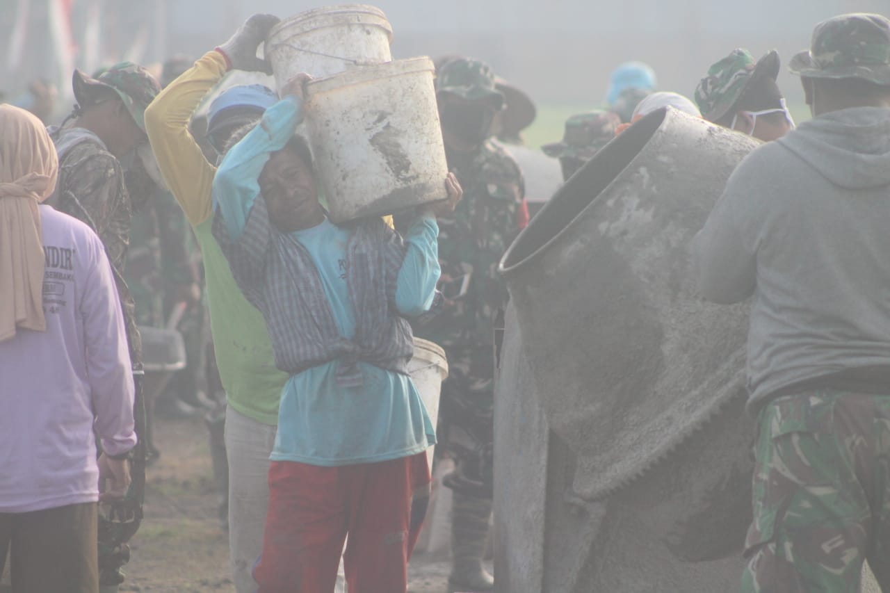 Menurut penuturannya setiap hari dia selalu bergantian mengikuti kerja bhakti dilokasi betonisasi karena merasa sangat terbantu dengan adanya program TMMD regular 111 Kodim Pati di desanya tersebut.Rabu,(30/06/2021).