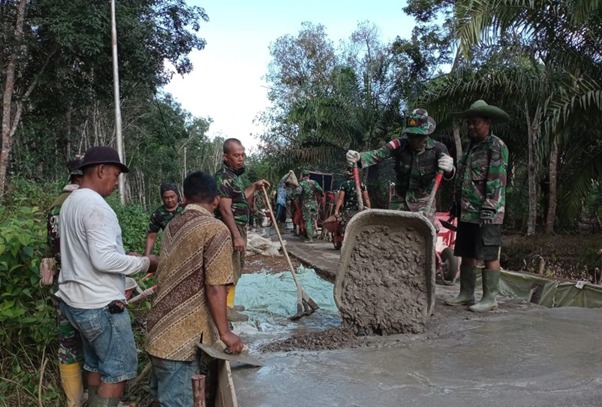 “Coba saja kalau tidak ada arco, tidak mungkin pekerjaan bisa secepat ini” ujar Sertu Sugiyanto sambil menumpahkan adukan semen dari dalam arco.