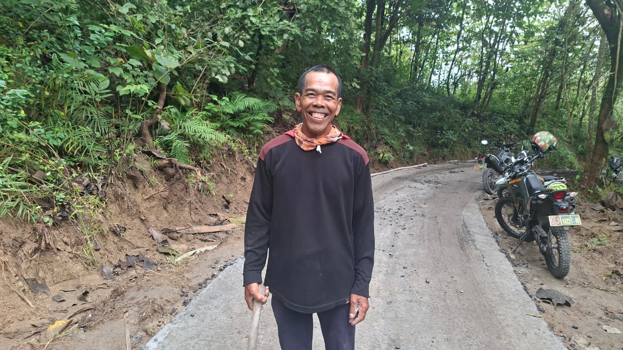 “Saya sangat senang dan ikhlas membantu bapak-bapak TNI. Dulu kalau habis panen, angkut padi susahnya luar biasa karena jalan rusak. Kalau jalan ini sudah jadi beton, angkut hasil panen pasti jauh lebih mudah dan cepat,” ujar Karyono dengan nada penuh syukur di sela-sela kegiatannya.