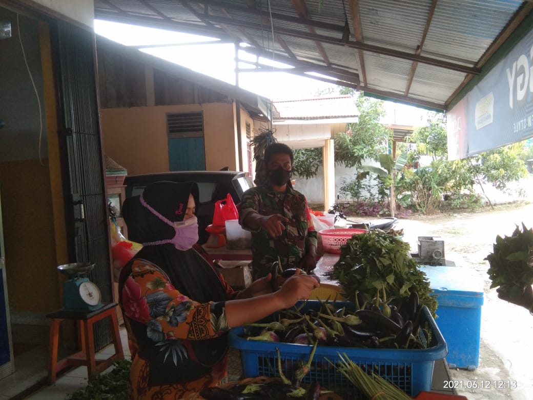 Dalam Komsosnya, Serda Masnar mengimbau para pedagang untuk tetap menerapkan protokol kesehatan (Prokes) sebagai antisipasi penyebaran Covid-19.
