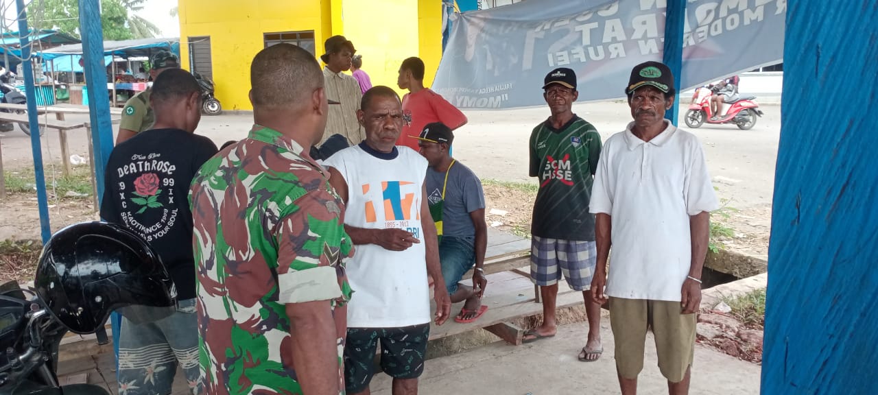 kliksumatera, Sorong,- Suasana canda tawa dan kekeluargaan terlihat pada pelaksanaan Komunikasi sosial oleh Babinsa Koramil 1802/Sorong Barat Sersan Dua T. Yembise pada warga binaan di jalan Danau Tempe kampung Salak RT06 RW 04 Kelurahan Klawasi Distrik Sorong Barat. Selasa (09/05/2023)