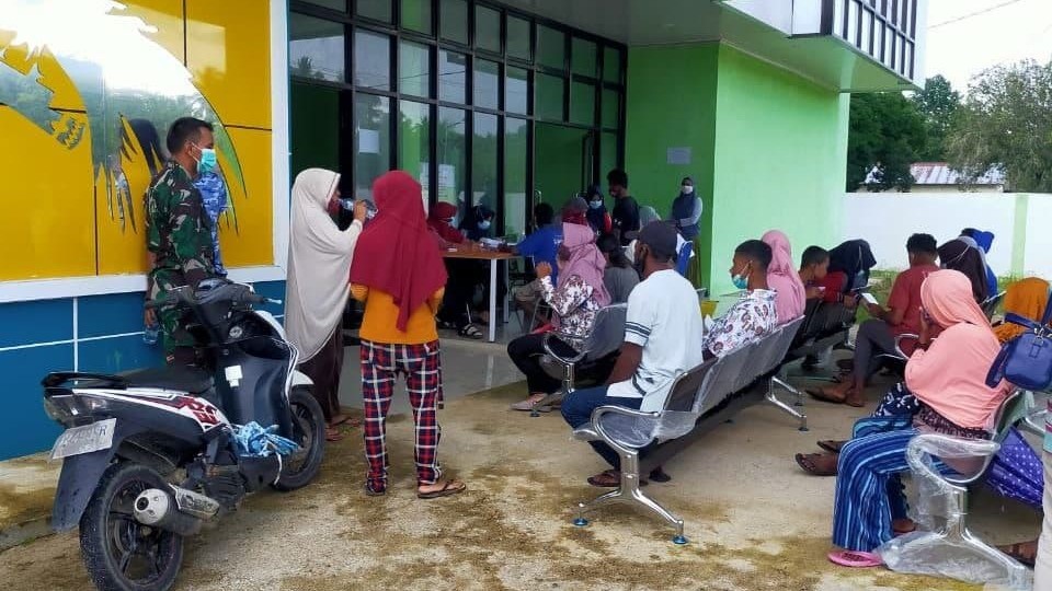 Sorong Papua Barat- Pentingnya Vaksin untuk mencegah penyebaran Virus Covid-19 di masa Pandemi ini dan mematuhi protokol kesehatan Babinsa Koramil Persiapan Salawati Selatan Kodim 1802/Sorong. Serka Wandi menghadiri dan mengawasi kegiatan vaksin yang dilaksanakan oleh Puskesmas Salawati Selatan Kabupaten Sorong. Kamis(23/09/2021).