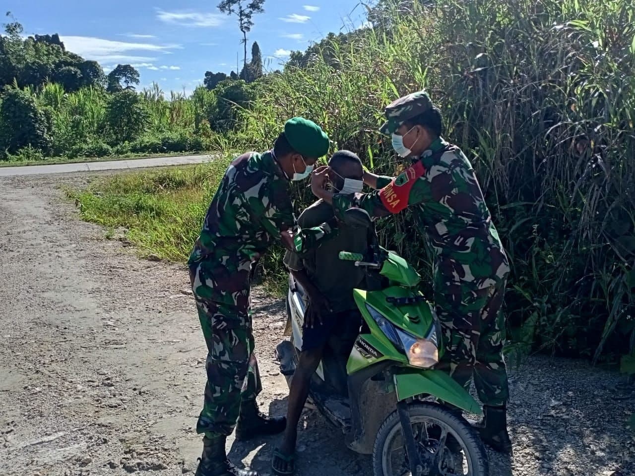 Sorong Papua Barat – Masih merebaknya kasus Covid-19 Babinsa Koramil Persiapan Sayosa Kodim 1802/Sorong. Sertu Indra Dwiyanto beserta tiga anggota Babinsa melaksanakan komunikasi sosial dangan menghimbau kepada masyarakat akan pentingnya protokol kesehatan dalam setiap aktivitas. Jumat (16/07/2021).