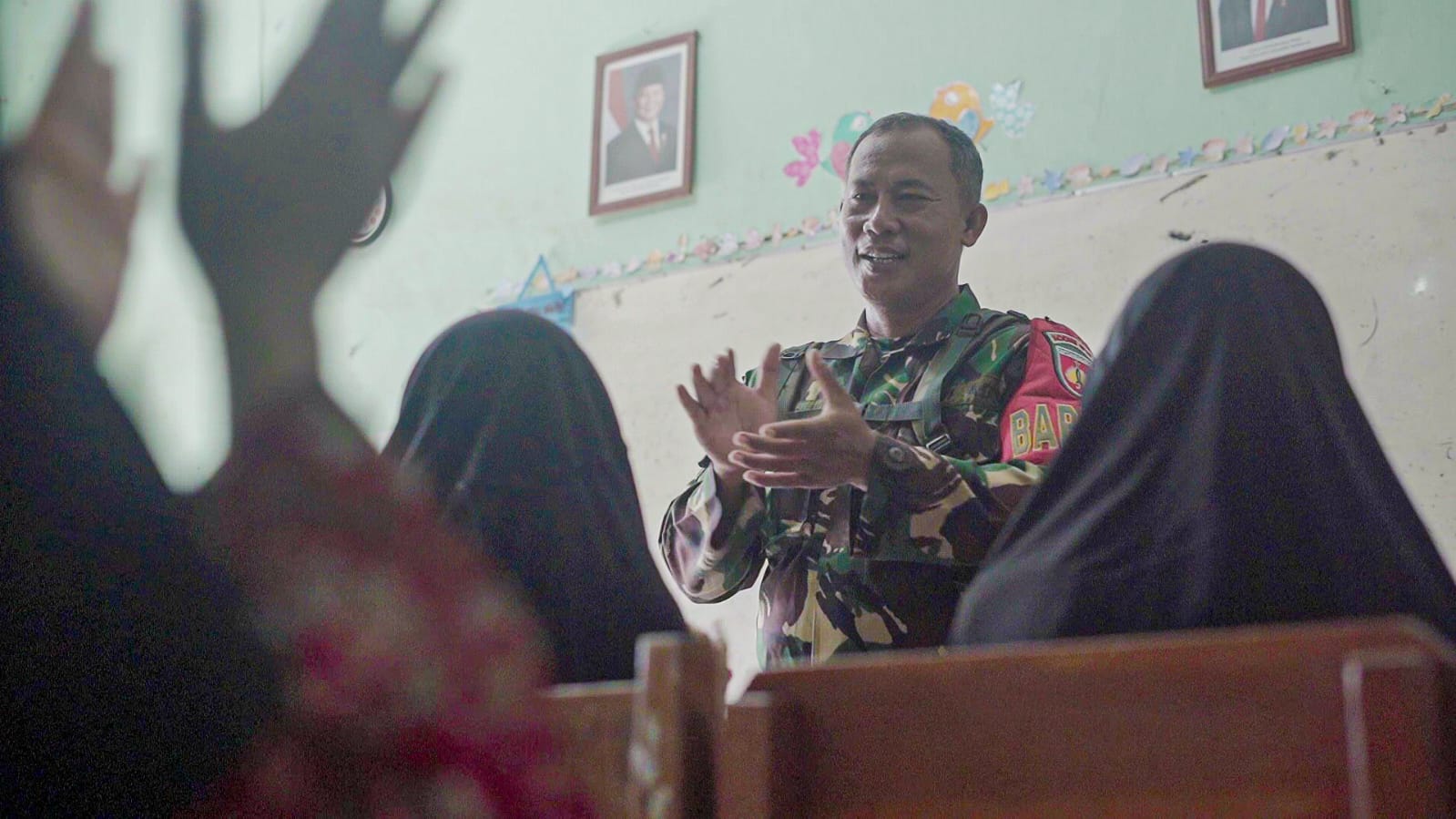 Kehadiran prajurit TNI di dalam kelas ini menjadi pemandangan yang memotivasi para siswa. Dengan didampingi Guru Kelas 6, Ibu Waenah, S.Pd., Serka Sagiman memberikan materi wawasan kebangsaan serta dorongan moril agar anak-anak desa tidak patah semangat dalam mengejar cita-cita.