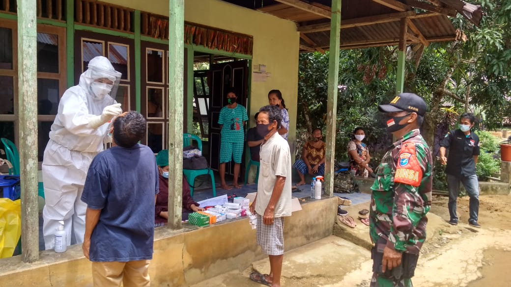 “Kegiatan tes swab Covid-19 ini dilaksanakan oleh Puskesmas Karangan sebagai langkah pencegahan penyebaran virus corona di wilayah Desa Caokng,” kata Serda Saipul.