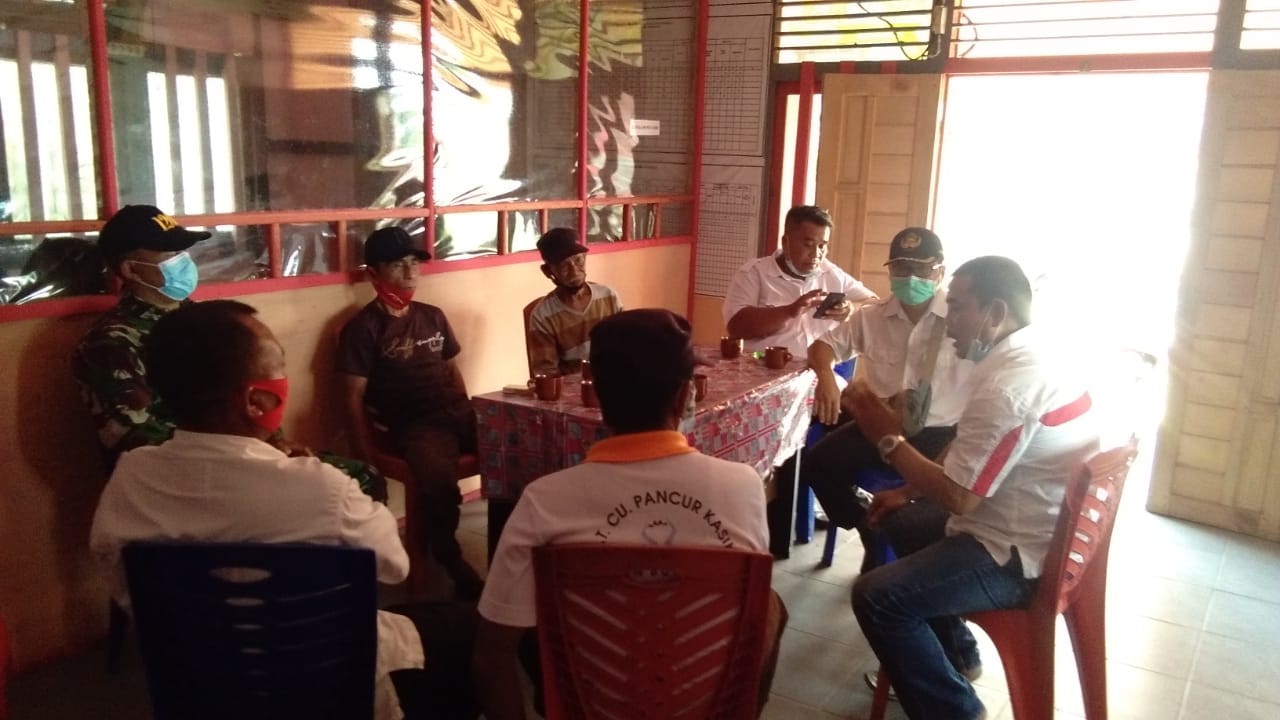 Landak- Babinsa Koramil 1201-07/Mempawah Hulu, Serda Simon melaksanakan komunikasi sosial (komsos) dengan perangkat Desa Sompak, Ketua BPD, Ketua DAD Kecamatan Sompak, Kabupaten Landak, Rabu (9/6/2021)