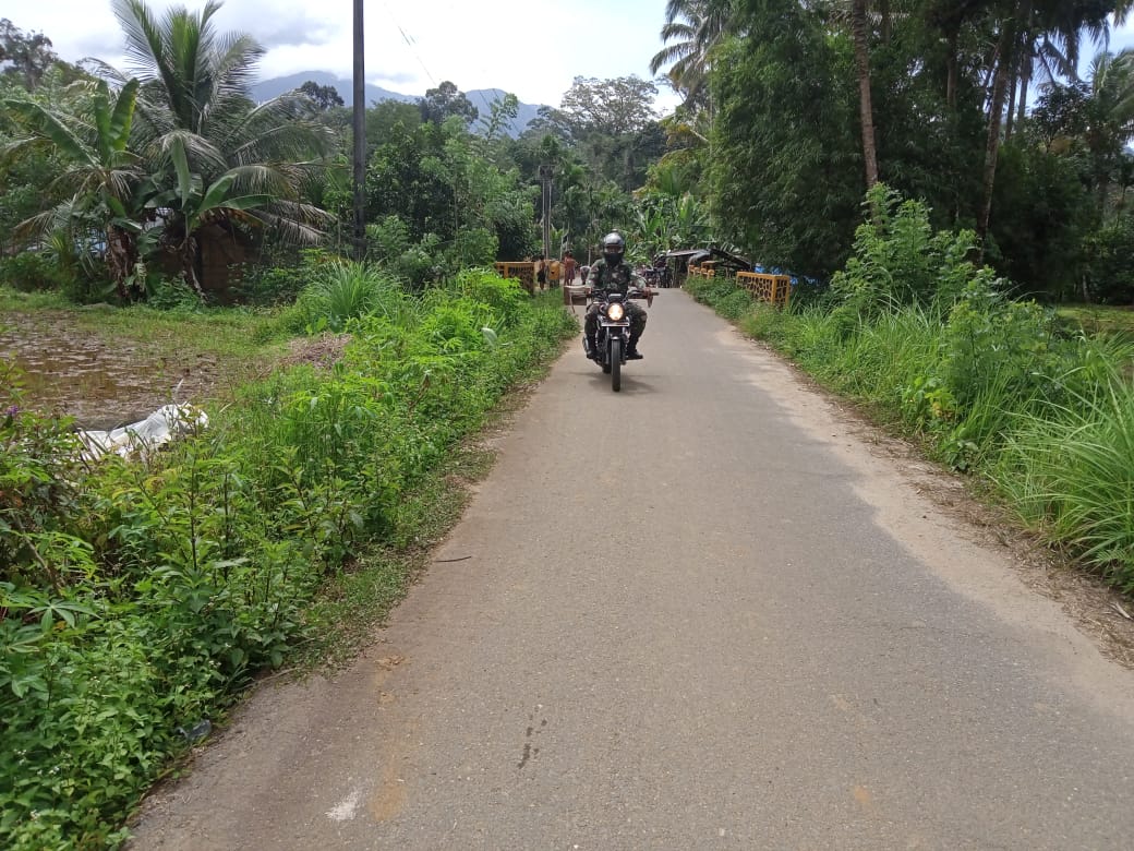 Perjalanan menuju lokasi dengan udara yang sangat sejuk dan dihiasi dengan suara burung berkicau membawa Pak Babinsa menuju tempat tugas di lokasi TMMD, Babinsa Serma Eko menikmati perjalanan menuju Lokasi TMMD.