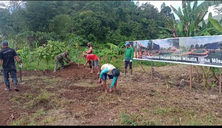 Serda Sawaludin mengatakan, kerja bakti itu dalam rangka persiapan acara pencanangan Desa Wisata Berkelanjutan dan penancapan tiang pertama Objek Wisata Persawahan.
