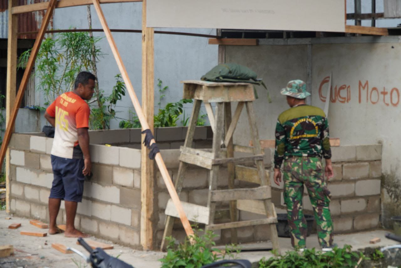 Sambas – Satgas TNI Manunggal Membangun Desa (TMMD) Regtas ke-126 Kodim 1208/Sambas terus menunjukkan semangat tinggi dalam menyelesaikan sasaran fisik program TMMD di Desa Ratu Sepudak, Kecamatan Sebawi. Salah satu kegiatan yang kini tengah dikerjakan adalah perehaban poskamling yang menjadi sarana keamanan bagi warga setempat.