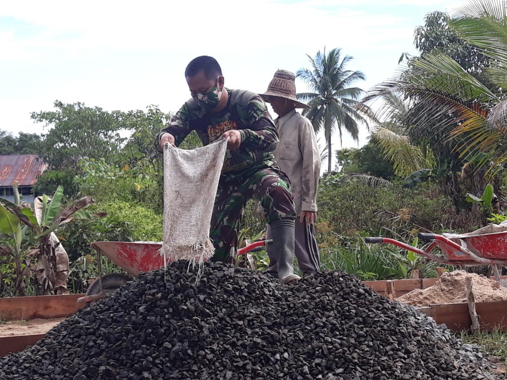 Nampak Sertu Ari dengan semangat melaksanakan pekerjaan dengan sebaik-baiknya dengan harapan agar tugas segera diselesaikan, sehingga warga pun akan melihat hasil akhirnya.