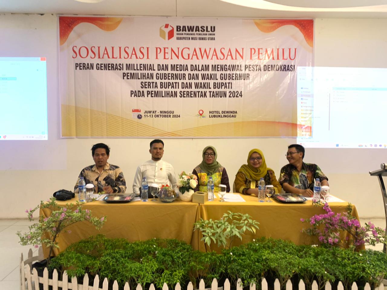 Sosialisasi dilaksanakan di Hotel Dewinda Kota Lubuklinggau dengan Tema Peran Generasi Milenial dan Media dalam mengawal pesta Demokrasi Pemilihan Gubernur dan Wakil Gubernur Sumatra Selatan dan Bupati dan wakil Bupati pada pemilihan serentak Tahun 2024 dan kegiatan sosialisasi tersebut berlangsung Mulai Jum,at 11 Oktober Hingga 13 Oktober 2024 .
