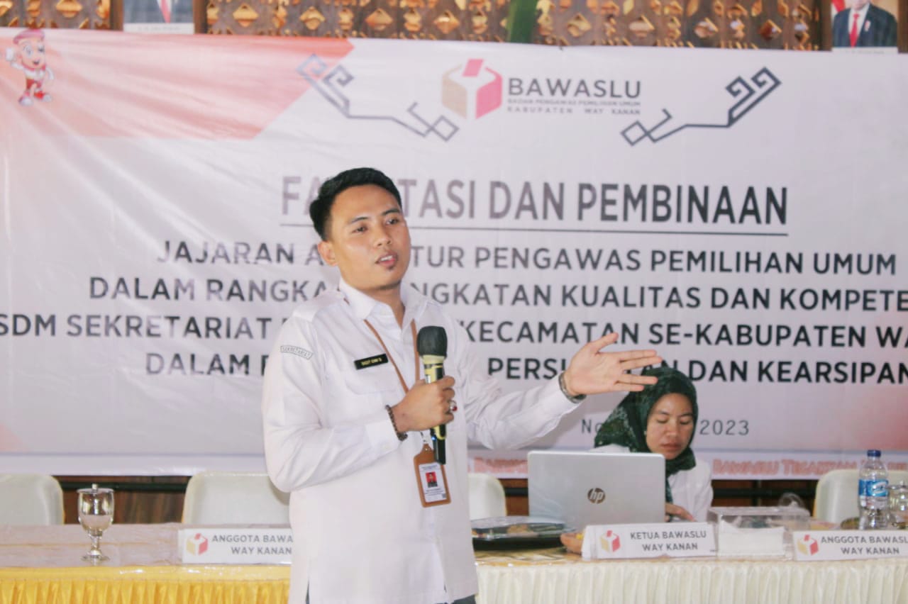 Bawaslu Kabupaten Way Kanan mengajak kepada seluruh unsur masyarakat yang memenuhi syarat untuk berpartisipasi aktif dalam menjaga demokrasi di Indonesia khususnya Kabupaten Way Kanan melalui peran sebagai Pengawas TPS. “Pengawas TPS melengkapi jajaran pengawas Pemilu dalam melakukan tugas pengawasan Pemilu tahun 2024. Sebagai ujung tombak, SDM calon pemgawas harus benar-benar baik dari hasil rekrutmen yang baik,” jelas Sigit Dwi Suwardi.