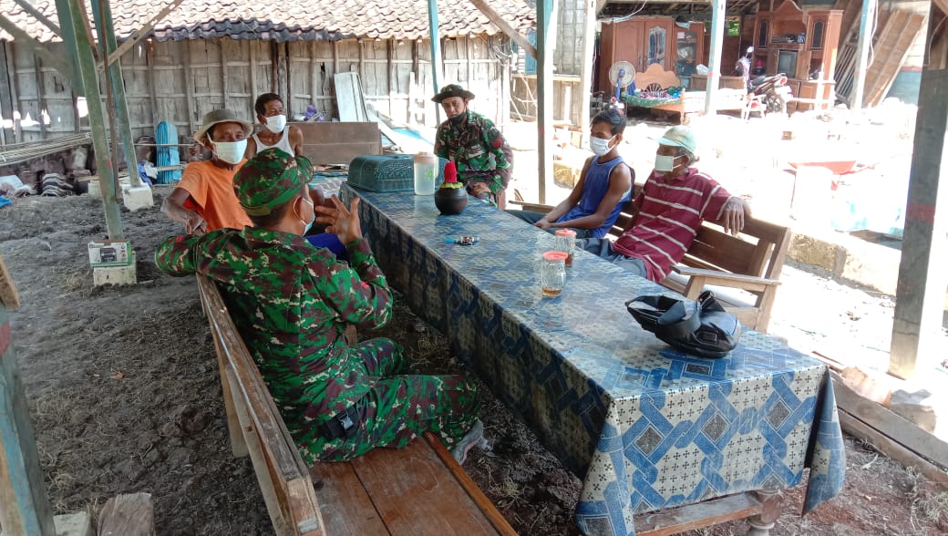 Bojonegoro – para personil Satgas TMMD (TNI Manunggal Membangun Desa) masyarakat 110 ini tetap menggunakan protokol kesehatan covid-19 agar tidak terpapar sebaran covid-19, hal ini diterapkan di masyarakat saat berbaur dan berkunjung di masyarakat.