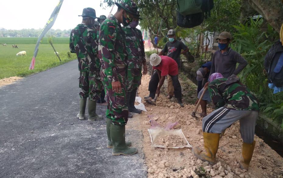 Salah satu Satgas TMMD ke-110 Kodim 0813/Bojonegoro, Serda Agung mengatakan jika pembangunan aspal jalan raya desa sudah hampir terselesaikan dan tinggal bereem.
