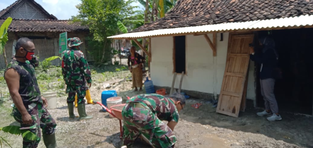 BOJONEGORO – Satgas TMMD Ke 110 Kodim 0813/Bojonegoro hampir menyelesaikan pengerjaan rumah program Aladin milik Bapak Yadi