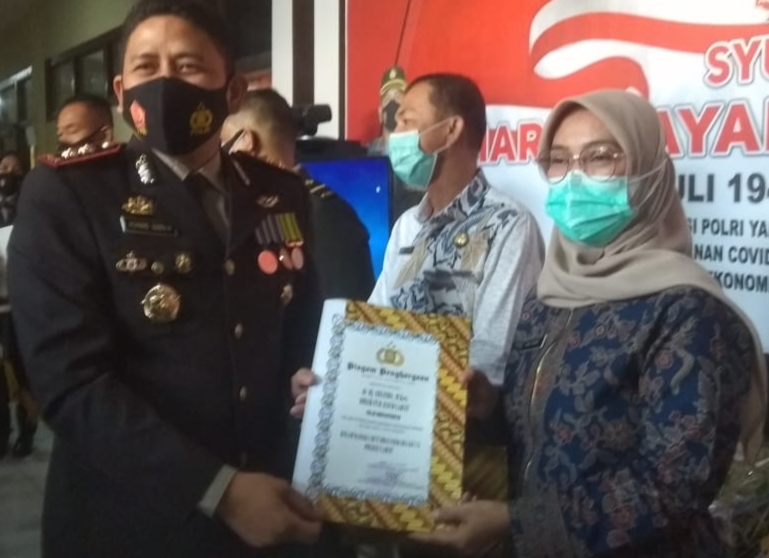 Kliksumatera.com, LAHAT- Apresiasi dan penghargaan diberikan oleh Polres Lahat secara langsung kepada Dr. Erlindah MKes Direktur RSUD Lahat yang telah melaksanakan tugas berat serta kewajiban sebagai tenaga medis dalam merawat dan mengobati para pasien Covid-19 yang sampai saat ini terus meningkat dan telah mencapai 106 pasien di Kabupaten Lahat.