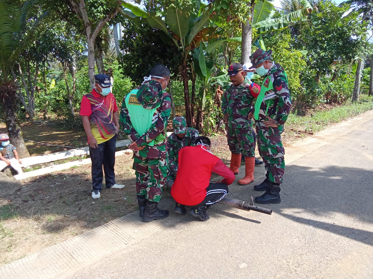 LAMPUNG BARAT – Guna mengantisipasi pencegahan penyebaran penyakit demam berdarah, TMMD-120 Kodim 0422/LB bersinergi bersama Puskesmas Air Hitam dan aparatur Pekon Srimenanti melaksanakan kegiatan fogging bertempat di Pekon Srimenanti Kec. Air hitam Kab. Lampung Barat