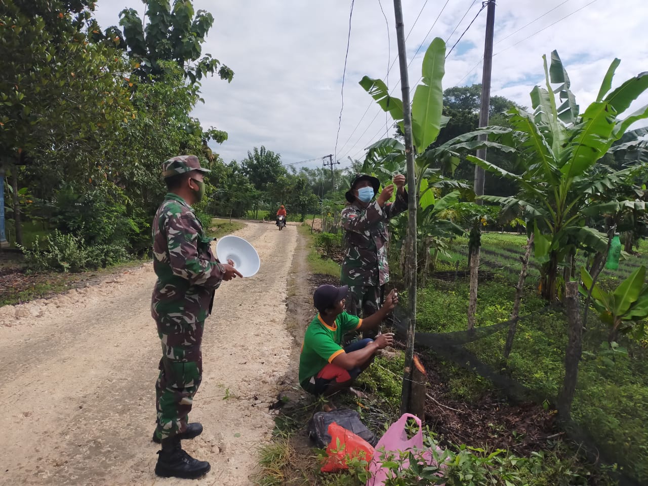 Anggota Satgas TMMD ke 110 Serda Sugianto beserta Koptu Kasturi membantu pembenahan lampu jalan yang di pakai penerangan jalan di dusun Kalongan guna mendukung program TMMD.