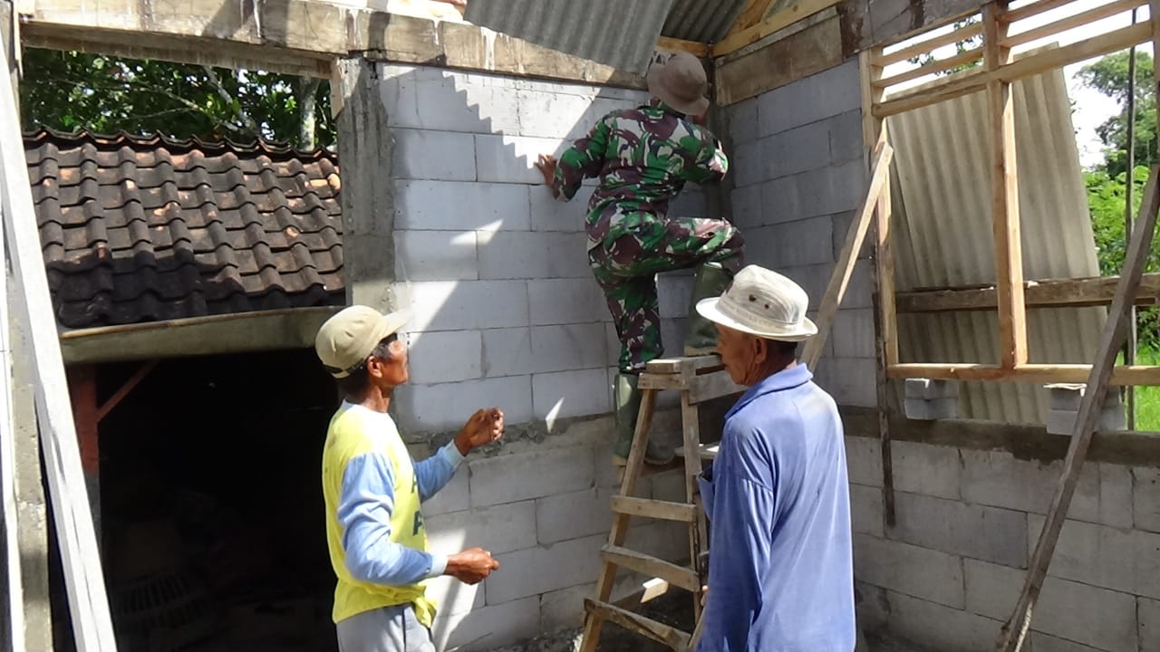 Serda Sutriyono mengatakan, pemasangan atap rumah milik tersebut sudah mencapai target hingga 50 persen. saat ini pihaknya dan warga bekerja gotong-royong memasang untuk menyelasaikannya,Senin(22/03/2021).