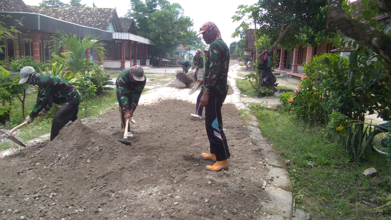 Serda Sutriyono mengatakan, pemerataan material jalan tersebut dilakukan untuk mempecepat proses perbaikan jalan, hal itu dilakukan secara gotong-royong dengan warga setempat.