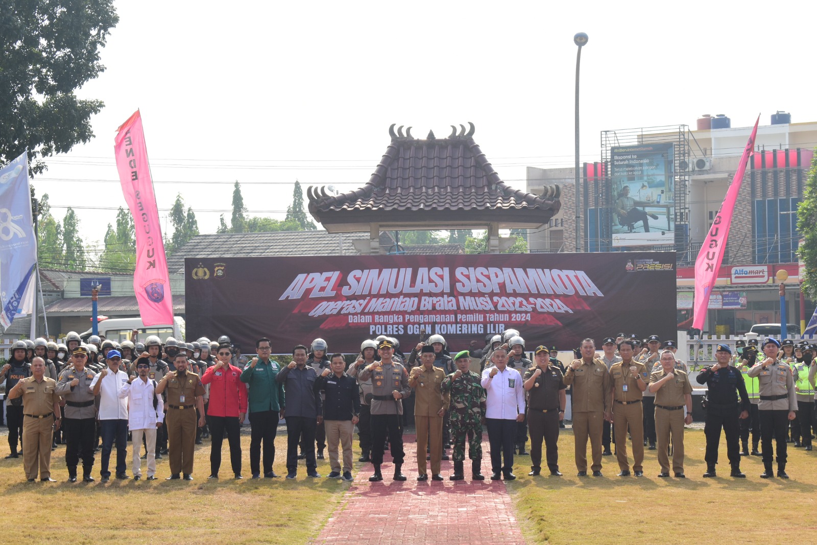 Kliksumatera.com, KAYUAGUNG- Kepolisian Resor (Polres) Ogan Komering Ilir menggelar Simulasi Sispamkota Ops Mantap Brata 2023 di halaman Kantor Bupati OKI Senin, (16/10). Simulasi ini, menurut Wakil Bupati OKI, H.M Djafar Shodiq jadi upaya terbaik mengantisipasi dan meminimalisir kontigensi pada pemilu mendatang.