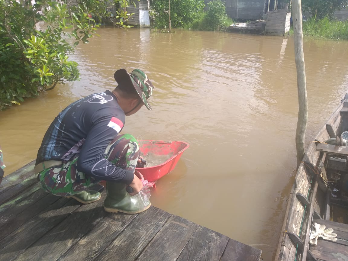 Praka Atep pun mulai mencuci arco-arco yang habis digunakan di sungai sekitar tempat pelaksanaan TMMD karena kebetulan memang dekat sehingga tidak perlu jauh-jauh.