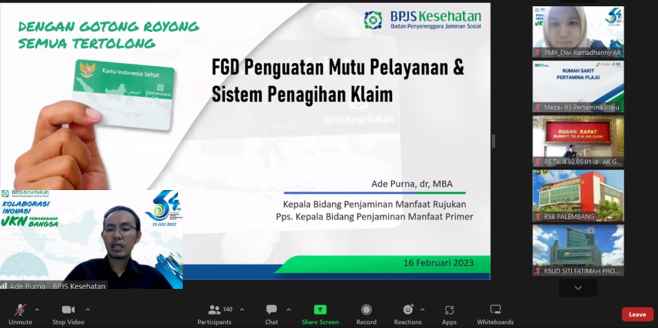 Kliksumatera.com, PALEMBANG– BPJS Kesehatan Cabang Palembang melakukan Focus Group Discussion (FGD) guna meningkatkan Mutu Pelayanan Program Jaminan Kesehatan Nasional (JKN) bersama 431 Fasilitas Kesehatan Tingkat Pertama (FKTP) dan 46 Fasilitas Kesehatan Rujukan Tingkat Lanjutan (FKRTL), Kamis (16/02).